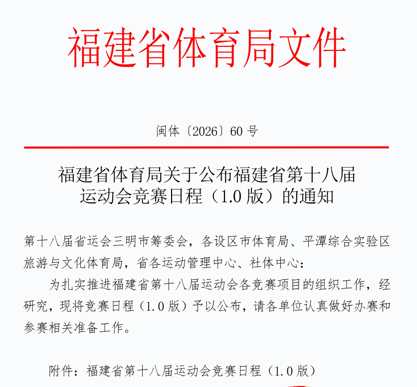 福建省体育局发布通知