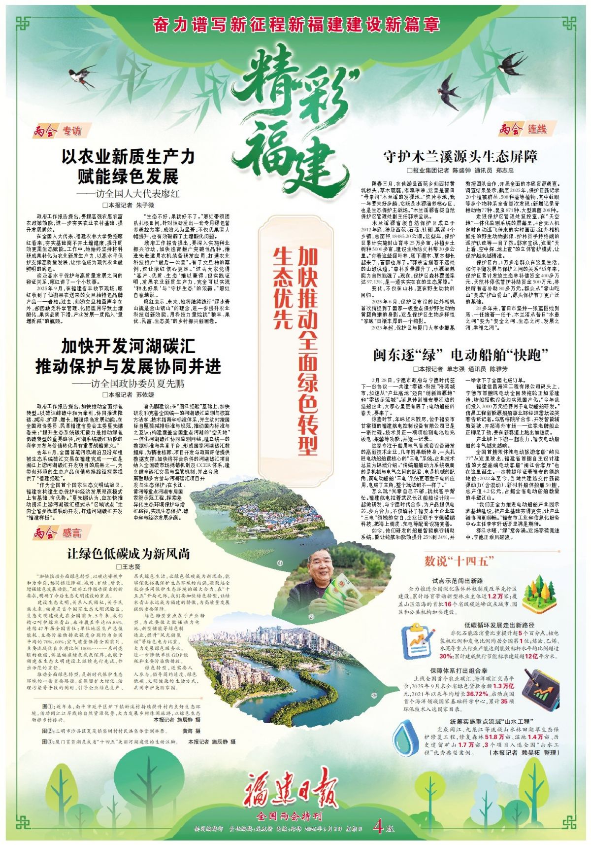 3月8日,《福建日报》继续推出《奋力谱写新征程新福建建设新篇章》全国两会特刊·精“彩”福建。具体如下——