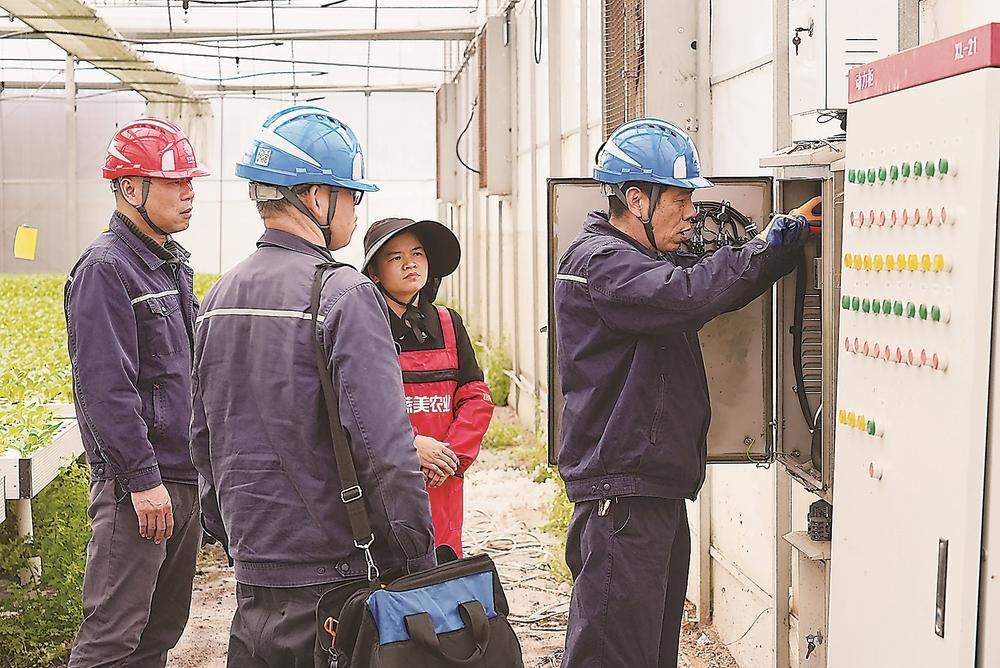 国网福州供电公司琅岐供电所工作人员在马尾区琅岐镇的雪美种苗繁育基地排查用电安全隐患。陈德钧 摄