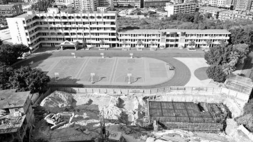 昨日上午,记者来到水头中学,项目工地已经用铁围栏隔离开来,工人头戴安全帽,正在认真作业,地下室以及消防水池的雏形已经成型。