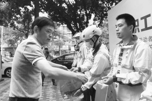 南安市总工会开展慰问活动,为外卖小哥送上慰问品。