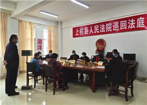 上杭法院开展巡回审判 福建法治报 2021-02-05 21:38 福建法治报-海峡法治在线1月20日讯 近日,上杭法院刑事审判庭前往上杭县湖洋镇,对被告人吴某犯编造虚假恐怖信息罪一案进行巡回开庭审理并当庭宣判,判处其有期徒刑八个月,缓刑一年。 (林新英 摄)