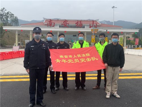 2020年2月,为进一步充实新冠肺炎疫情防控一线工作力量,南安法院干警组成青年党员志愿者突击队,前往南安市梅山高速路口担负起设卡、体温检测、外来车辆登记引导等任务,发挥青年干警在防疫抗疫中的先锋模范作用,以青年党员的青春热血诠释实干为民的初心使命。