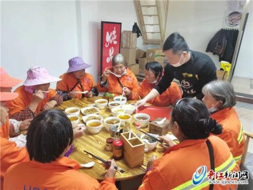 晋江陈埭一小吃店 请44名环卫工吃免费午餐