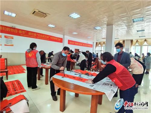 据介绍,这是磁灶镇连续20多年组织开展“文化进万家”送春联活动。往年,镇里都是组织书法家进村(社区)书赠春联;今年由于疫情原因,改为邀请书法家写春联,然后再由各村(社区)组织志愿者走家入户为群众贴春联、送祝福。