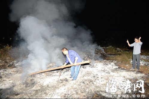在现场,高新区环保局和南屿镇政府人员将明火扑灭。随后,当地村委负责人派来洒水车,将余火扑灭。