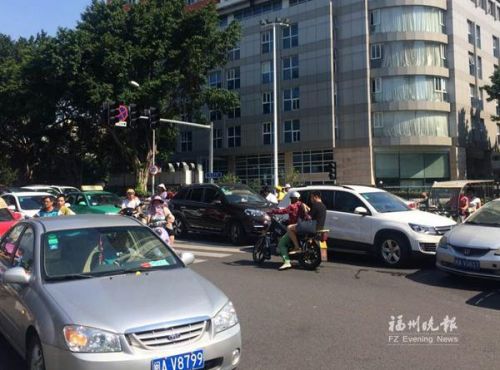 福新路六一路口信号灯瘫痪 交通陷混乱人车混行