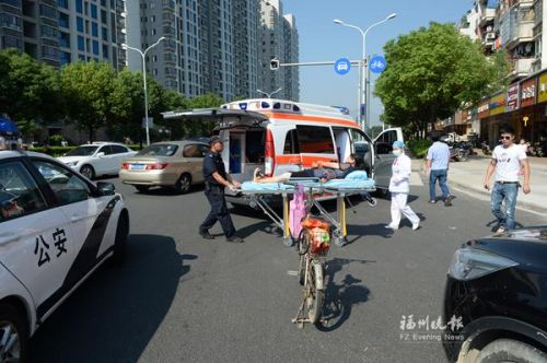 昨日上午,记者途经现场时看到,一辆救护车停在路口,医护人员将一名受伤的依姆抬上车,看上去人并无大碍。据了解,当时依姆骑车准备过马路,结果不慎被一辆由上雁路右拐至卢滨路的小车撞倒在地。“路口的信号灯一直是黄闪状态,车辆通行无序安全隐患大。”冬馨苑居民陈先生说。