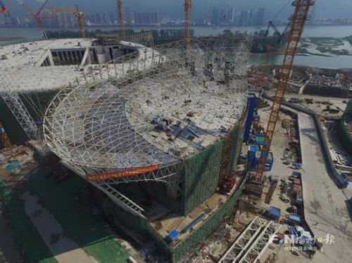 海峡文化艺术中心音乐厅主体钢结构封顶。