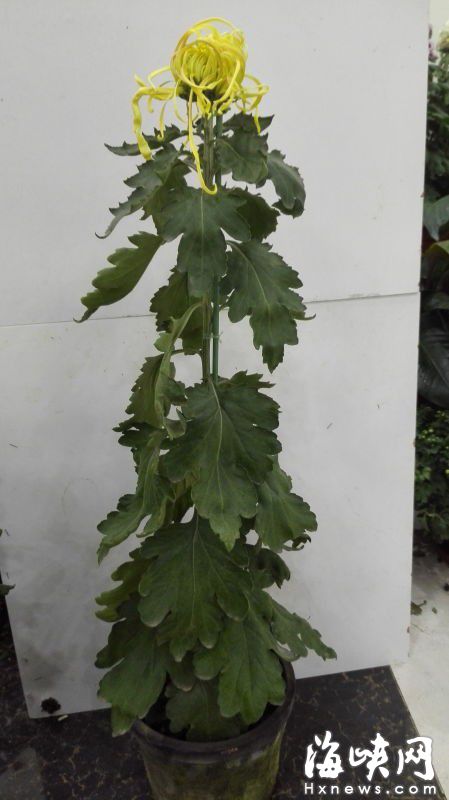 昨日,西湖公园方面向记者展示了获得世界大奖的这株菊花的图片。这是一株黄色的丝瓣菊花,有一米多高,叶片舒展,叶色是纯正的绿色,没有任何枯叶,叶尖也没有焦黄。这株菊花获得了“2016唐山世界园艺博览会”栽培技术竞赛品种菊类的大奖。