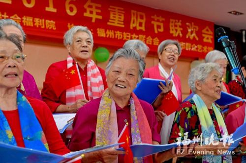 昨日,市妇联组织巾帼志愿者来到福州市社会福利院,陪伴该院270多位老人共度重阳节。