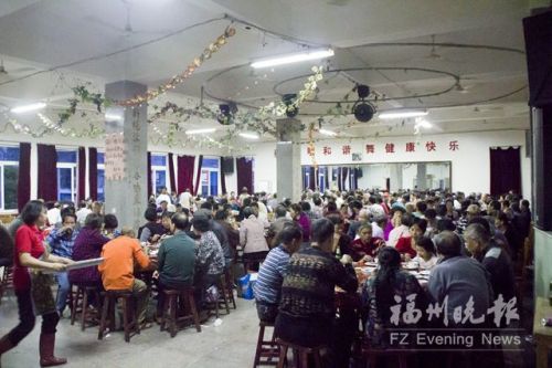 昨日傍晚,随着一阵鞭炮声响,128张大圆桌摆开。马尾区亭江镇闽安村的1000多名老人在子女陪同下,由马尾闽安村委会、闽安社区居委会、闽安老人协会为老人们准备的“千叟宴”开席了。(记者 陈若凡 林春长 张笑雪 陈曦 叶诚 马丽清 林欢欢 卢锃 邱泉盛 陈建国 林铭 杨勇 通讯员 郑婷 陈晓静 饶嘉 文/摄)