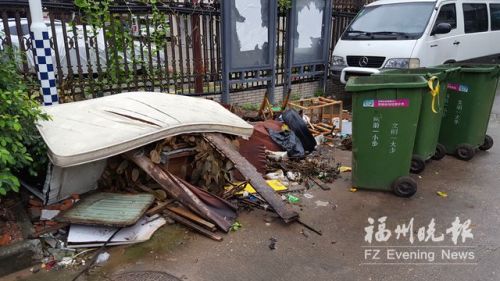 记者昨日来到马榕小区,看到马榕幼儿园不远处的18号楼楼下的栏杆边有一堆被人丢弃的床垫、柜子、轮胎及木板等垃圾,而在这堆垃圾旁有三个绿色的垃圾桶,垃圾桶内的垃圾并不多。林女士说,国庆节前这里有很多垃圾,堆积了数天没有清理,臭气熏天,后来社区进行了清理,可是很快又有人把垃圾丢弃在这里。林女士说,她就住在旁边的居民楼里,感到气味十分难闻,而且把垃圾扔在幼儿园旁,对孩子健康也不利。