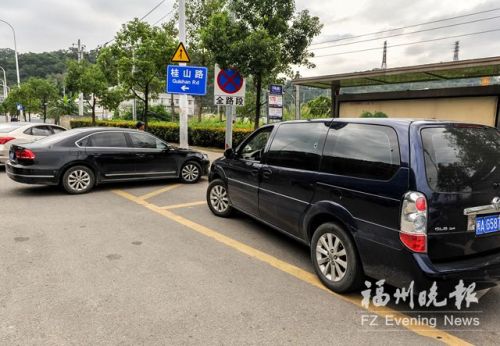 昨日9时45分记者看到,距离火车站北广场约300米的三环路桂山路口公交站停了七八辆私家车,整个站台完全被围住,途经的公交车无法正常靠站上下客,而公交站前后两头的醒目位置挂着两面全路段禁停的标识牌。