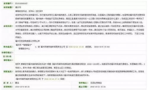 收到市民的这封建议书后,福州市“智慧福州”管理服务中心当天第一时间就在转办意见中要求福州市城市地铁有限责任公司限期批转。