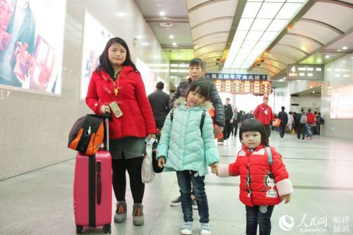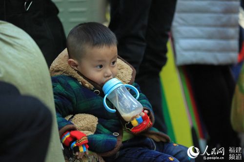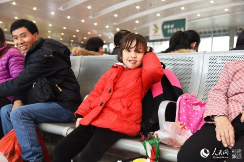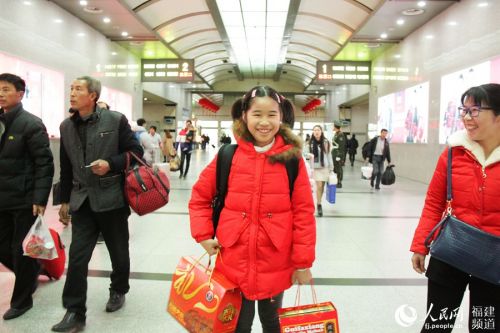 人民网福州1月15日电(余杉芳)伴随着2017年春运大幕的拉开,思乡心切的人们背起沉重的行囊,步履匆匆地踏上了回家的路,在福州火车站的归乡大军中,不乏随着大人返乡过年的萌娃们,他们是春运大军中的“小候鸟”。