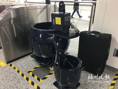昨日是春运的第二天,安检是每年春运的重头戏。地铁安检更加严格,昨日下午,记者在福州火车站的地铁进站口看到了安检“新武器”——排爆桶。