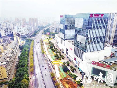 提升商业广场前的绿化:对万达商业广场前剩余的约12 米宽的绿化结合人行道、商业广场进行提升改造。(记者 王林成/文 包华/图)