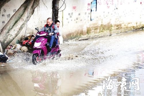 昨日中午,海都记者来到琴亭小学,恰好是放学时间,不少孩子从学校里走出来。此时路面上的积水还未退,不少接送孩子的家长,骑电动车趟水而过时,水花四溅,坐在车上的孩子,不得不将脚缩起来。一些高年级的孩子,则踩水而过,鞋子和裤子都湿透。