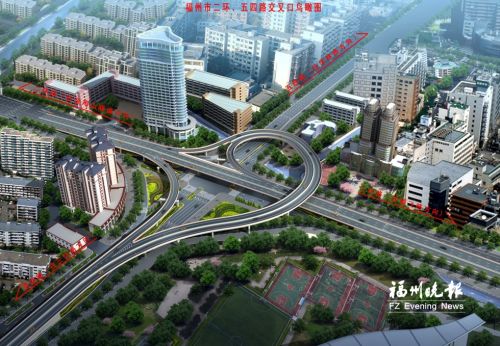 为疏解城区道路重要节点的交通拥堵状况,市委、市政府统一部署了福州市第一批缓堵重点工程建设项目,其中二环五四路口改造工程是“重中之重”。