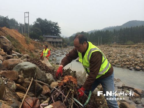 闽清试水村保洁员兼职河道专管员 负责河道巡查保洁
