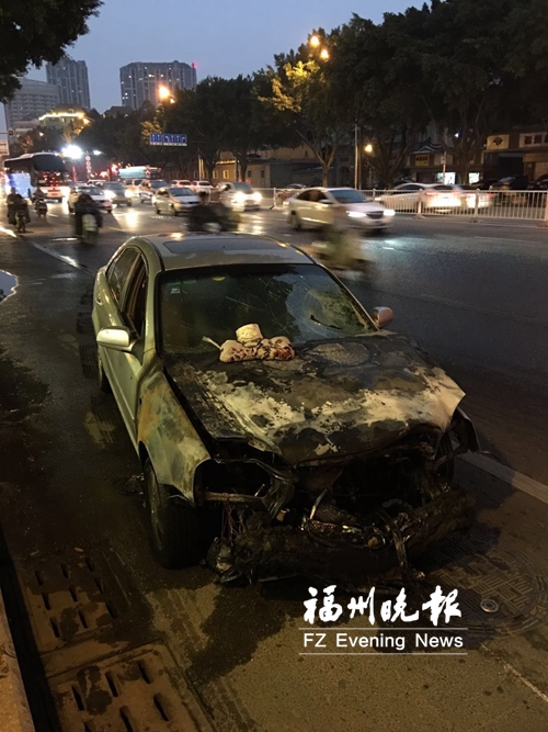 记者来到现场时,自燃小车已由交警部门的清障拖车移到路旁,车头严重烧毁。目击者陈先生介绍,驾车的是一名女司机,驾车行驶至现场时发生了自燃。事发后,女司机慌了神,未及时采取自救措施。路人见到后,从路旁的家具店拿了两个灭火器,路过的公交车司机也递给施救者两个灭火器。由于火势较大无法扑灭,随后消防人员赶到,总算给小车“熄火”。