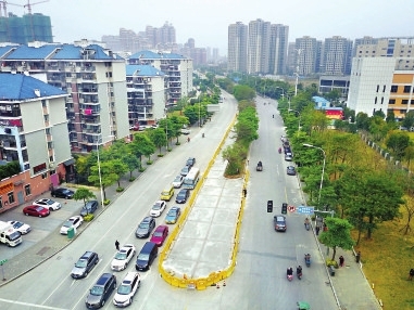 福州金洲南路绿化中分带“瘦身” 腾出一车道