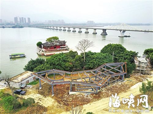 记者看到,洪塘渡口附近,正在建设金山寺大门,从效果图上看,是西湖公园正门的缩小版。据沙滩公园的相关负责人表示,金山寺的范围,仍由建新镇方面管理,大门外是公园区域。南侧的钢构仿古建筑,将和金山寺的风格相融合。(记者 石磊磊/文 包华/图)
