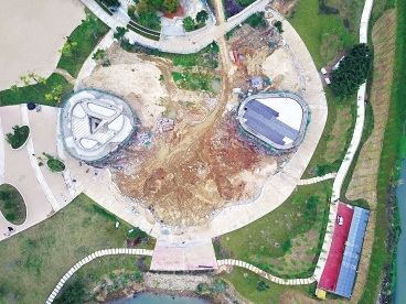 大榕树景观内有两个花瓣状建筑,从高空看像个笑脸