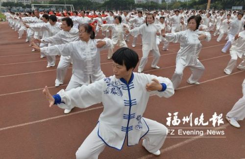 八段锦、五禽戏、易筋经……在仓山区金山全民健身活动中心,来自我市的近1000名健身气功爱好者同场献艺,大家动作整齐划一,场面蔚为壮观。