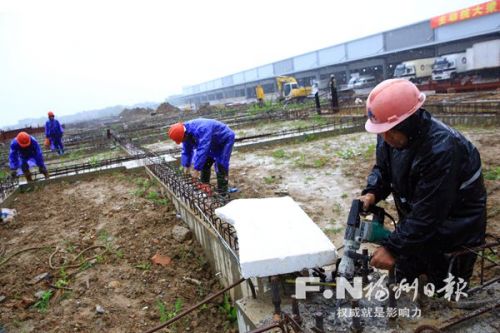 昨日,位于闽侯县南通镇泽洋村的普洛斯福州南通物流仓储中心(一期)项目工地上,工人正冒雨进行仓库地基的钢筋捆绑作业。在“攻坚2017”行动中,该项目增加一倍施工力量,增加夜间施工时间,确保项目在9月底前全面建成投用,为广大第三方企业提供近5万平方米的个性化定制仓储服务。