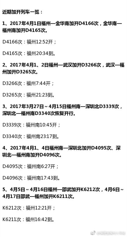 近期加开列车一览: