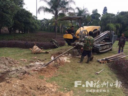 工人们采用拉管技术进行排水通道施工。图片由市水务管网公司提供