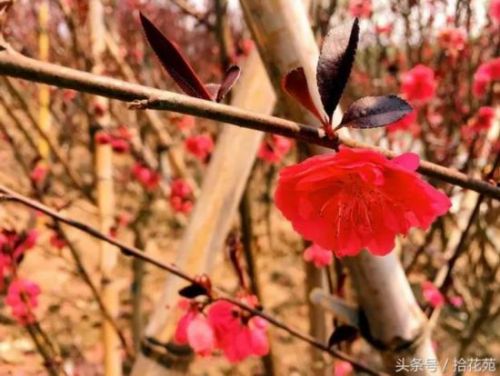 牛浦河公园的千余株红叶碧桃,是这个地块的标志性景观,桃花的叶片却是紫红色的。现在花期还没有结束,不过赏花却要进入工地内。拾花君就帮大伙儿看了一眼。
