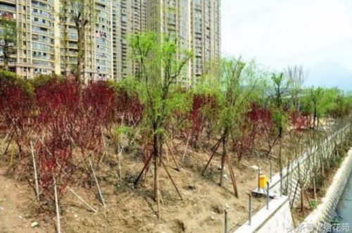 园林专家表说,红叶碧桃,春天可以观花,夏季可以遮阴,其他季节可以作为色叶植物。为了让这些桃李能在明年形成更好的效果,施工人员打掉了大部分的花朵,保证红叶碧桃生根的养分。