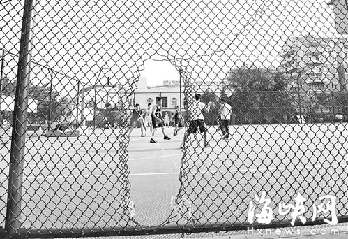 篮球场的铁丝网被人剪开进去运动