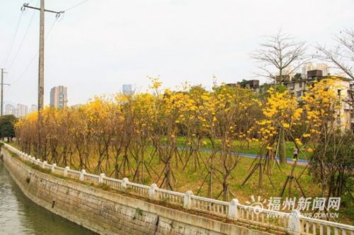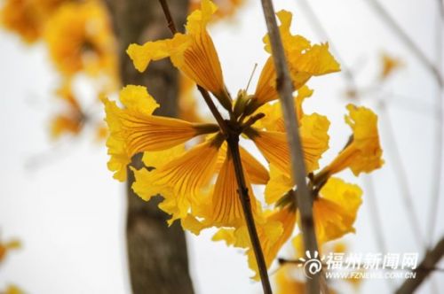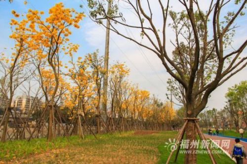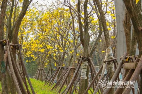 据悉,在福州的行道树里,黄花风铃木的抗风能力比较强,在春季开花且仅有半个月左右的花期。近年,黄花风铃木被大面积推广,在福州长福路、珠宝路、化工路等路段多有种植。(记者 原浩)
