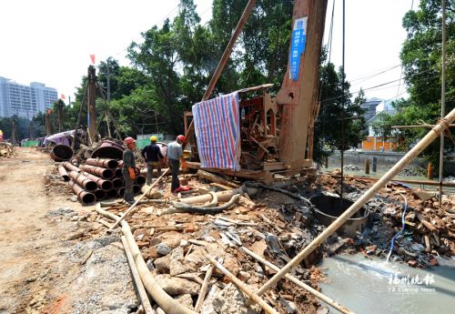 其中,东浦路桥下至茶园路桥880米河道,原宽度约36米,计划拓宽至约42米。目前,已经完成晋安河东侧长237米的施工,共打了183根桩基,正在进行驳岸装饰施工;晋安河西侧正在搭建钻机施工平台。按计划,6月30日前将完成该段扩河改造。