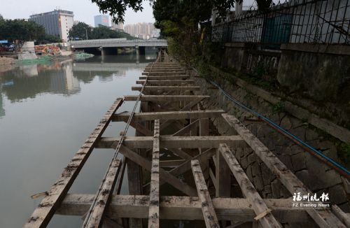 “晋安河桥梁下的栈道上漂浮物缠绕,栈道边的水生植物上也挂满垃圾。每逢暴雨,城区涝水无法排泄,造成晋安河中上游区域内涝严重。”市城区水系治理指挥部相关工作人员分析,一到汛期,上游漂浮物就堵在木桥墩间,3米宽的木栈道成了晋安河的阻水物,严重影响洪水下泄。为此,河道内原有1公里左右的木栈道须拆除。