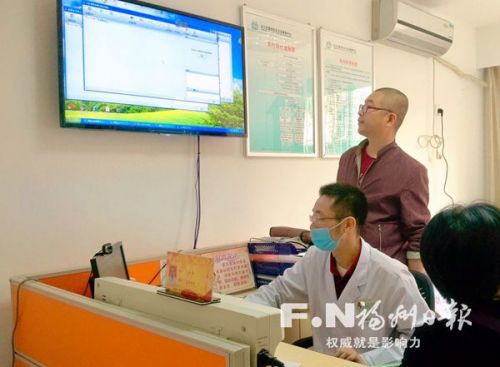7日上午,患有高血压、糖尿病的严大伯来到中心开药。“晚上有时候会气喘,现在的药方需要换吗?”严大伯问。医师陈铭通过“远程视频会诊平台”联系到上级医生。严大伯坐在社区卫生服务中心与市一医院的医生进行了一次“面对面”会诊。医生结合严大伯的心衰病史,提出了心脏彩超的建议。