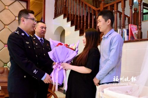 昨日,仓山公安分局和金山派出所的相关工作人员来到周修栋家中慰问,向警嫂林思翼送上鲜花与祝福。