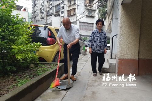 在一栋居民楼下,记者看到了陈美惠和郑英玉夫妇。“我今年85岁了,我老伴今年94岁了,我们都是福州人。”郑英玉说。面色红润的陈美惠耳聪目明,他说自己1998年搬进万春二区,从此开始了“小区义工”生涯。