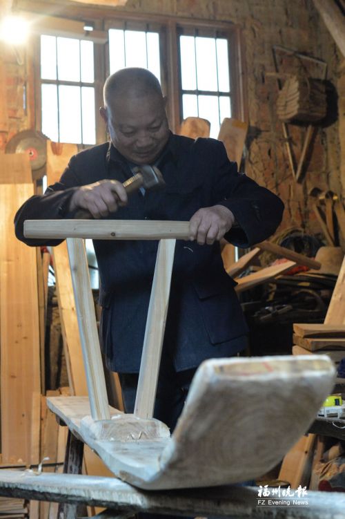 81岁的陈承桂老人在玉井村制作泥橇已经有五十多年了。他告诉记者:“做泥橇,最重要的就是做好下面的橇板。”