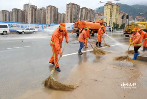 市交通局的养路工在永泰203国道葛岭段冲洗路面。