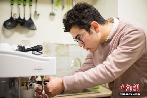光彩创咖是也里在福州大学尝试的创业项目。为了经营好这家咖啡店,他主动学习了意式咖啡的冲泡方法。李南轩摄