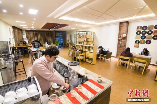 创业初期,也里也曾遇到入不敷出的难题。为了突破这一困境,他引进手冲咖啡,转变经营方式,针对大学生需求改善服务质量,赢得了顾客们的认可,咖啡店的营业额开始蒸蒸日上。李南轩摄