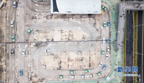 1日,福州火车站南广场,旅客走下天桥,出租车排队接客。新华网 肖和勇 摄