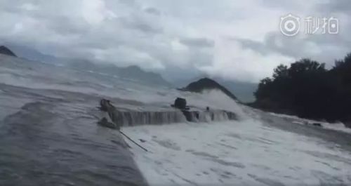 14日12时,受风暴潮和天文潮影响,惠州三门岛码头被海水淹没。来源:@广东天气