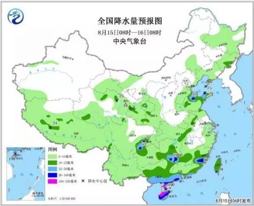 受其影响,今明天,广东、广西和海南沿海部分地区有大到暴雨,局地有大暴雨。其中,今天将是华南雨势最强的一天。中央气象台预计,8月15日08时至16日08时,华南南部有大到暴雨,其中,雷州半岛、海南岛西北部部分地区有大暴雨(100~190毫米)。