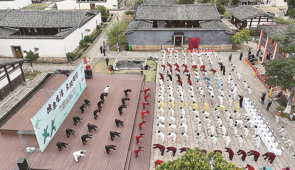 28日,福州市仓山区举办太极拳非遗传统武术展演活动。活动以梁厝特色历史文化街区为主会场,联动西湖公园、琴亭湖公园、旗山湖公园等多个分会场同步开展,数百名武术爱好者齐聚一堂,共展太极拳、地术拳、咏春拳、鸣鹤拳等武术风采。图为梁厝主会场现场。
